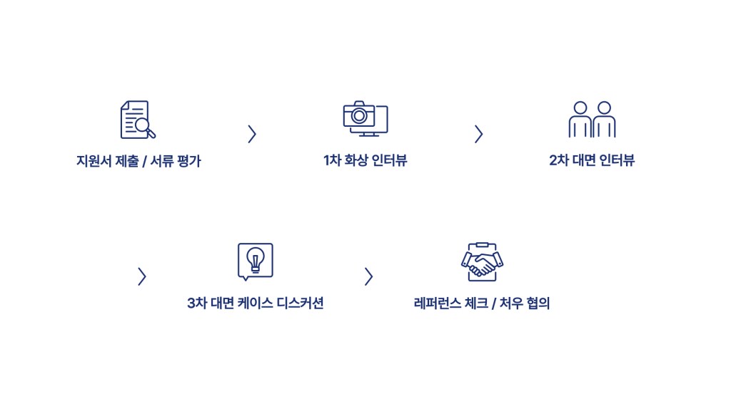 1차 면접, 과제 전형, 레퍼런스 체크, 2차 면접까지 이어지는 과정에서